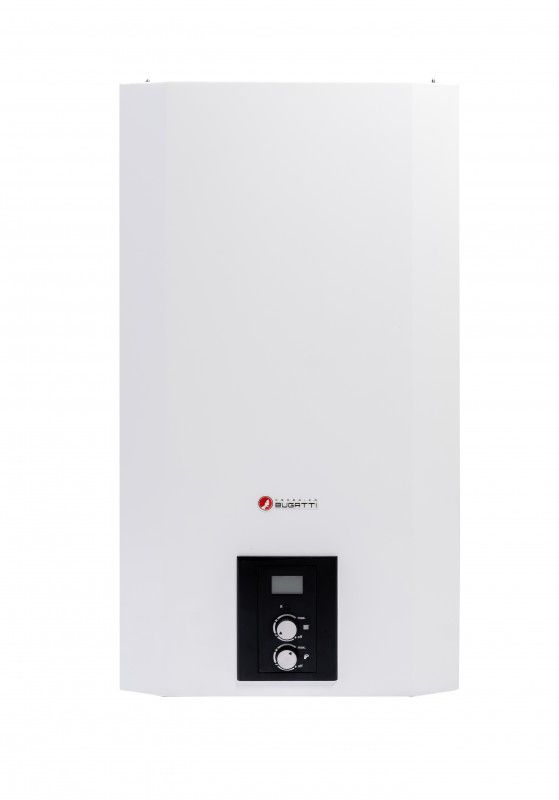 Wall-mounted double circuit gas boiler Federica Bugatti ECO TURBO - a moderm and high-tech unit with a 5 years guarantee! It is intended for use as an individual heating of houses, cottages and apartments, as well as for hot water preparation. Allowed to install in the cabinet, panels and recesses.Federica Bugatti Boilers - are: - of high quality;- exclusively European components;- guarantee of reliability and safetyFederica Bugatti ECO 12 TURBO meets all quality, safety and environmental requirements, which is confirmed by certificates. Does not lose its high performance indicators (efficiency of 93%) even with prolonged operation. Equipped with modern protection systems: - frost protection; - protection against overheating; - protection against pump jamming; - protection against formation of condensate; - protection against blocking of 3-way valve; - low voltage protection system;- electrical protection system; - smoke evacuation safety system. Maximum ease of operation due to mechanical adjustment and intuitive display. The stylish and innovative design will be a good addition to the Federica Bugatti Hotline 8-800-700-62-01 High efficiency of 93%- Electronic flame modulation- Intelligent protection system- Informative LCD display, automatic diagnostic system- Easy installation and maintenance- High-quality components ensure stable and efficient operation of the boiler: gas burner Polidoro (Italy), Grundfos pump (Denmark), heat exchangers Valmex (Italy), gas valve SIT (Italy).Efficiency, %: 92Chimney diameter, mm: 60/100Volatile: YesPurpose: double-circuitType of fuel: natural and liquefied gasWidth, mm: 490Depth, mm: 470Location: wallThe combustion chamber: closedNumber of heat exchangers: 2Main heat exchanger material: stainless steelHeating area (m2): 360Power, kWt: 36Max. heating temperature, °C: 85Guarantee period: 5Height, mm: 840Weight, kg: 37