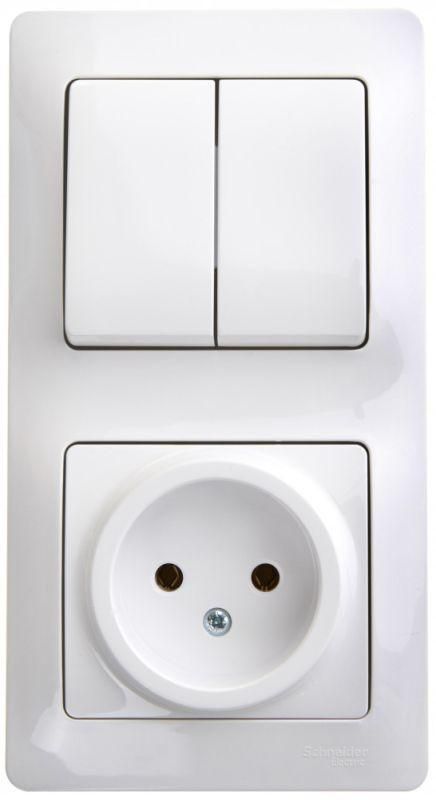Читать все статьиБлок комбинированный Glossa (розетка + 2-кл. выкл.) бел. SE GSL000172