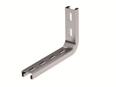 Применяется для монтажа трассы лотков с малой нагрузкой. Крепление к стене. Сталь толщиной 2,5 мм. 2 отверстия в основании. Предназначена для лотков шириной 300 мм.