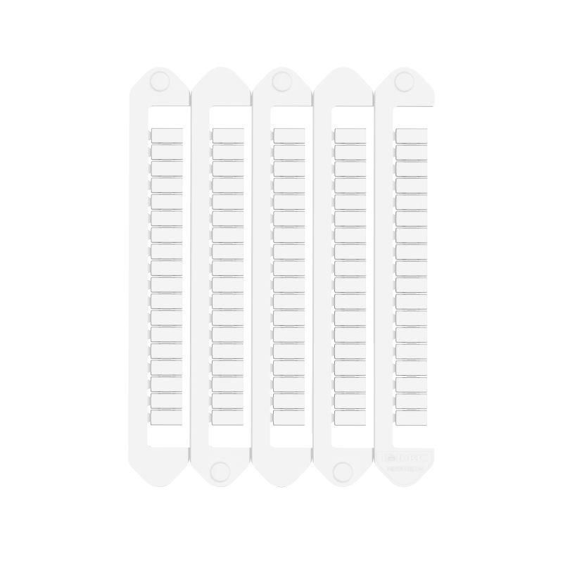 Маркировка клемм компании ДКС для печати на принтере MarkTC и MarkTC Plus. Материал – АБС-ПК. Класс горючести по UL94 - V0. Температура эксплуатации от –40 до +80 °С. Цвет – белый. Фиксируется на клеммах защелкиванием. Тег размером 5х10 мм. На пластине 90 тегов. В упаковке 10 пластин - 900 тегов.