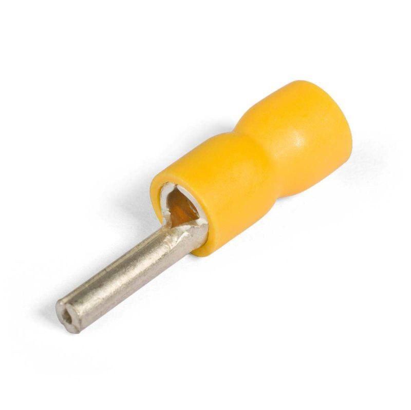 • Предназначены для оконцевания опрессовкой медных проводов и последующего крепежа наконечников к клеммам электрического оборудования • Мультидиапазонная альтернатива втулочным наконечникам • Всего 3 размера штыревых наконечников заменяют 9 размеров втулочных • Материал изоляции: самозатухающий ПВХ.Класс V-0 по UL94 • Термостойкость изоляции: 75 °C • Материал наконечника: медь марки М1 • Покрытие наконечника: электролитическое лужение • Максимальное напряжение: 690 В • Особенности конструкции: • исполнение «Easy Entry»: виниловая манжета отформована в виде раструба для облегчения монтажа многопроволочных медных жил • незаваренный стыковой шов на трубной контактной части наконечников • поперечные засечки на внутренней поверхности трубной части наконечников увеличивают механическую прочность соединения с жилой • Расширенные мультиразмерные диапазоны опрессовки • Опрессовка проводника поверх изолирующей манжеты