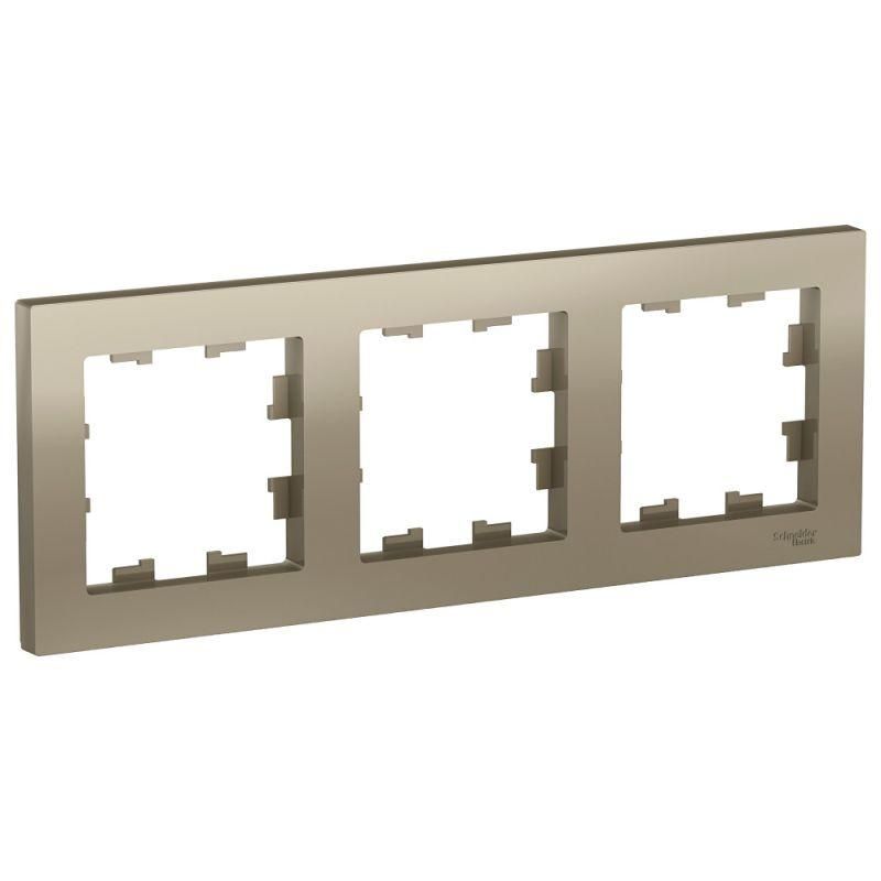 Рамка Systeme Electric (ранее Schneider Electric) серии AtlasDesign в цвете шампань трёхместная. - Устанавливается в вертикальном и горизонтальном положениях. - Лицевые детали из качественного ABS-пластика, устойчивого к царапинам и УФ-излучению. - Позволяет гармонично вписать электроустановочное изделие в интерьер помещения.