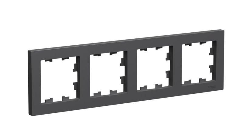 Рамка Systeme Electric (ранее Schneider Electric) серии AtlasDesign в цвете БАЗАЛЬТ четырёхместная. - Устанавливается в вертикальном и горизонтальном положениях. - Лицевые детали из качественного ABS-пластика, устойчивого к царапинам и УФ-излучению. - Позволяет гармонично вписать электроустановочное изделие в интерьер помещения.