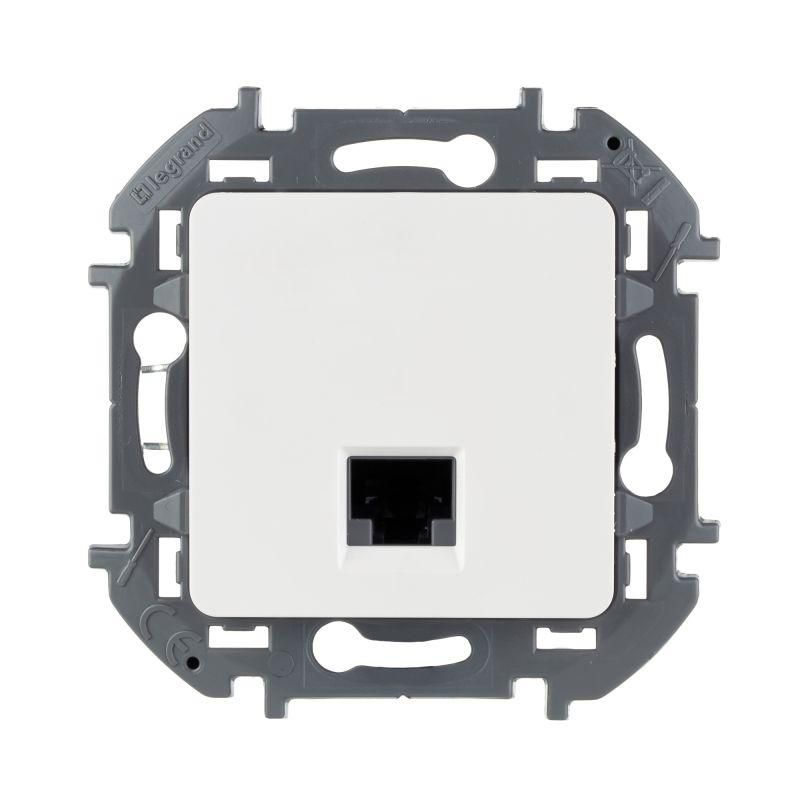 Розетка компьютерная для скрытого монтажа Inspiria, 1 разъем RJ45 категория 5е UTP, цвет "Белый". Предназначена для быстрого подключения персональных компьютеров, принтеров, роутеров и другого оборудования к информационным сетям категории 5е со скоростью передачи данных до 1000 Мбит/с. Возможно прямое подключение 1 устройства.