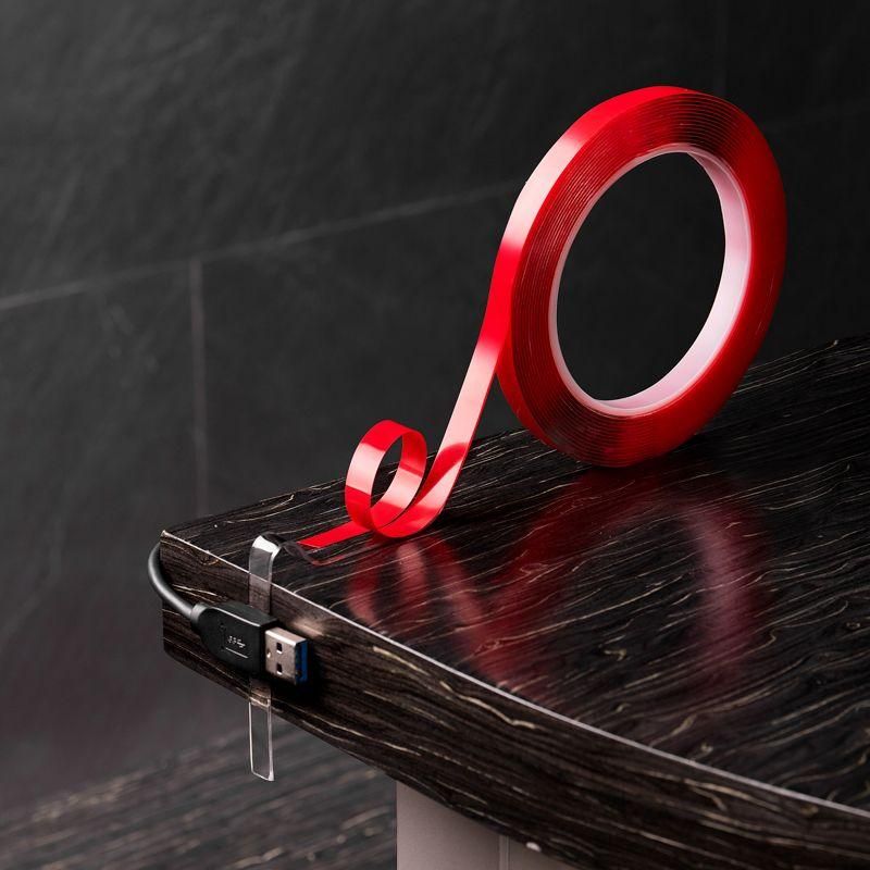 Двухсторонняя клейкая лента на основе акрила предназначена для склеивания поверхностей, которые требуют высокой прочности фиксации. Надежно соединяется с поверхностями из стекла, металла, пластика и дерева. Акриловая основа отличается высокой адгезией, поэтому хорошо фиксирует материалы на длительный срок. Максимальная величина адгезии достигается через 20-24 часа после склеивания предметов. Лента на основе акрила достаточно гибкая для того, чтобы склеивать предметы с неровной поверхностью. Устойчива к ультрафиолетовому излучению, влаге и температурным колебаниям, поэтому подходит для использования в местах, где может быть подвержена воздействию солнца и воды. Прозрачная лента может использоваться там, где важно, чтобы соединение было незаметным.