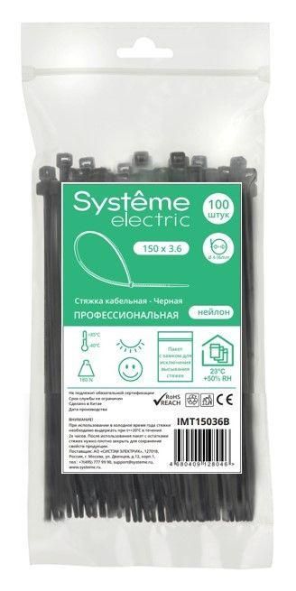 Читать все статьиСтяжка кабельная 150х3.6 черн. (уп.100шт) SE IMT15036B